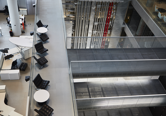 Die miteinander verbundenen Terrassen schaffen eine Kommunikationslandschaft, in der individuelles wie kollektives Arbeiten möglich ist.