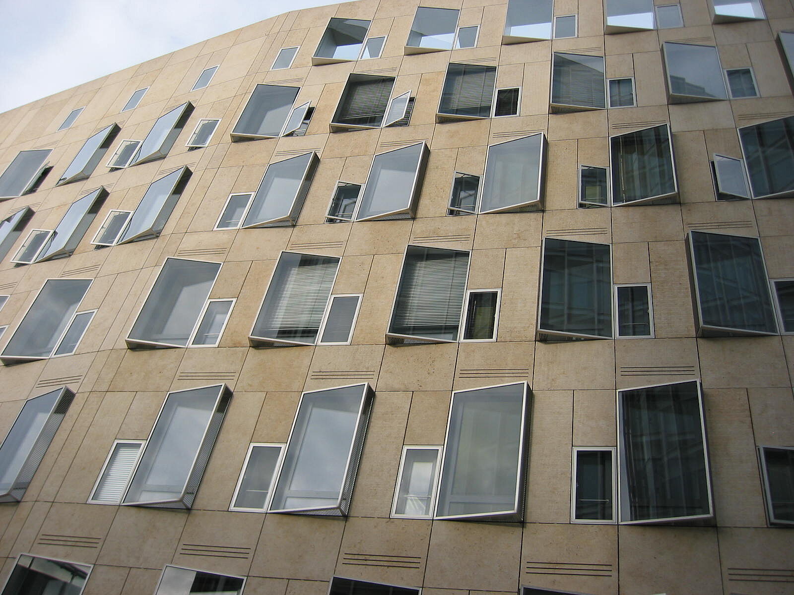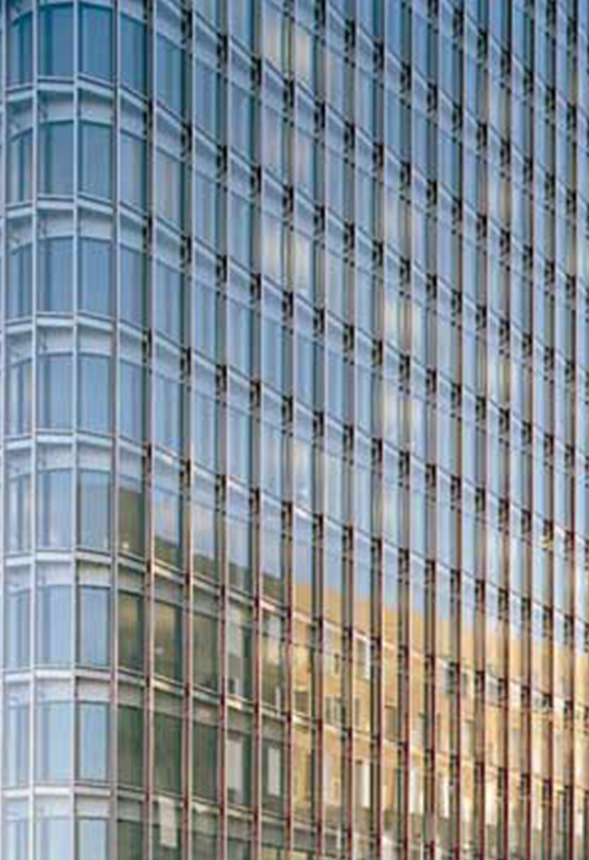Während die Fassade am Westriegel aus Naturstein erstellt wurde, haben alle anderen Gebäudeteile eine doppelte, hinterlüftete Glasfassade. Auch für das Gebäudeinnere wurden hochwertige Materialien und Einbauteile verwendet.