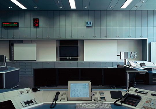 Alle Fahrzeughallen und feuerwehrtechnischen Einrichtungen sind im Erdgeschoss, Büros und sonstige Einrichtungen im Obergeschoss angeordnet.