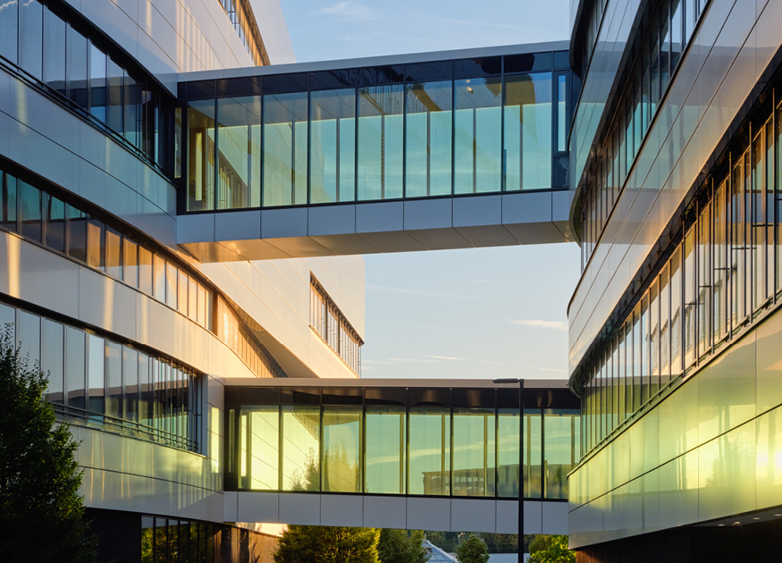 In Neckarsulm ist in einem Gewerbegebiet eine Neubau-Konstellation aus einem Bürogebäude mit 1.400 Arbeitsplätzen, einem 4-geschossigen Hallengebäude mit 24.000 m² Nutzfläche und einem Parkhaus mit 1.200 Stellplätzen entstanden. Das Ensemble ist als Campus organisiert und über einen gemeinsamen Sockel miteinander verbunden. Eine einheitliche Architektursprache zeichnet sich durch amorphe Grundrissfiguren mit gerundeten Ecken aus.