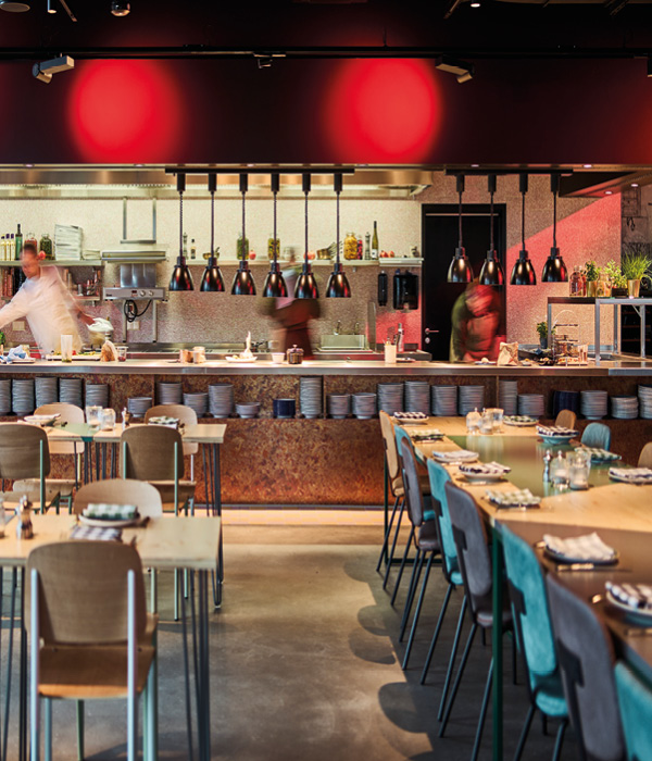 Im Erdgeschoss befinden sich die Lobby mit der Rezeption, Konferenzräume, ein Restaurant und eine Bar sowie der Back-of-House-Bereich.